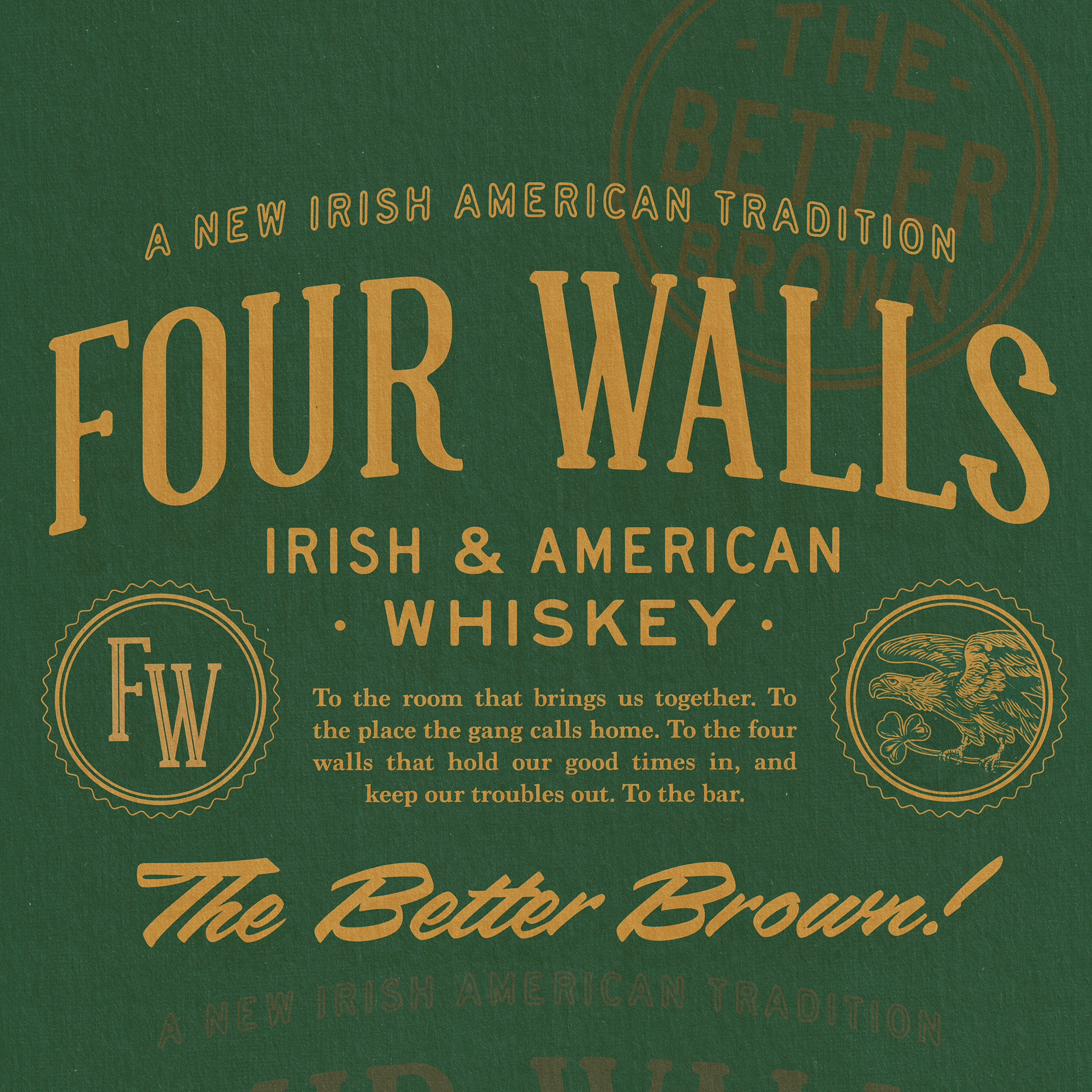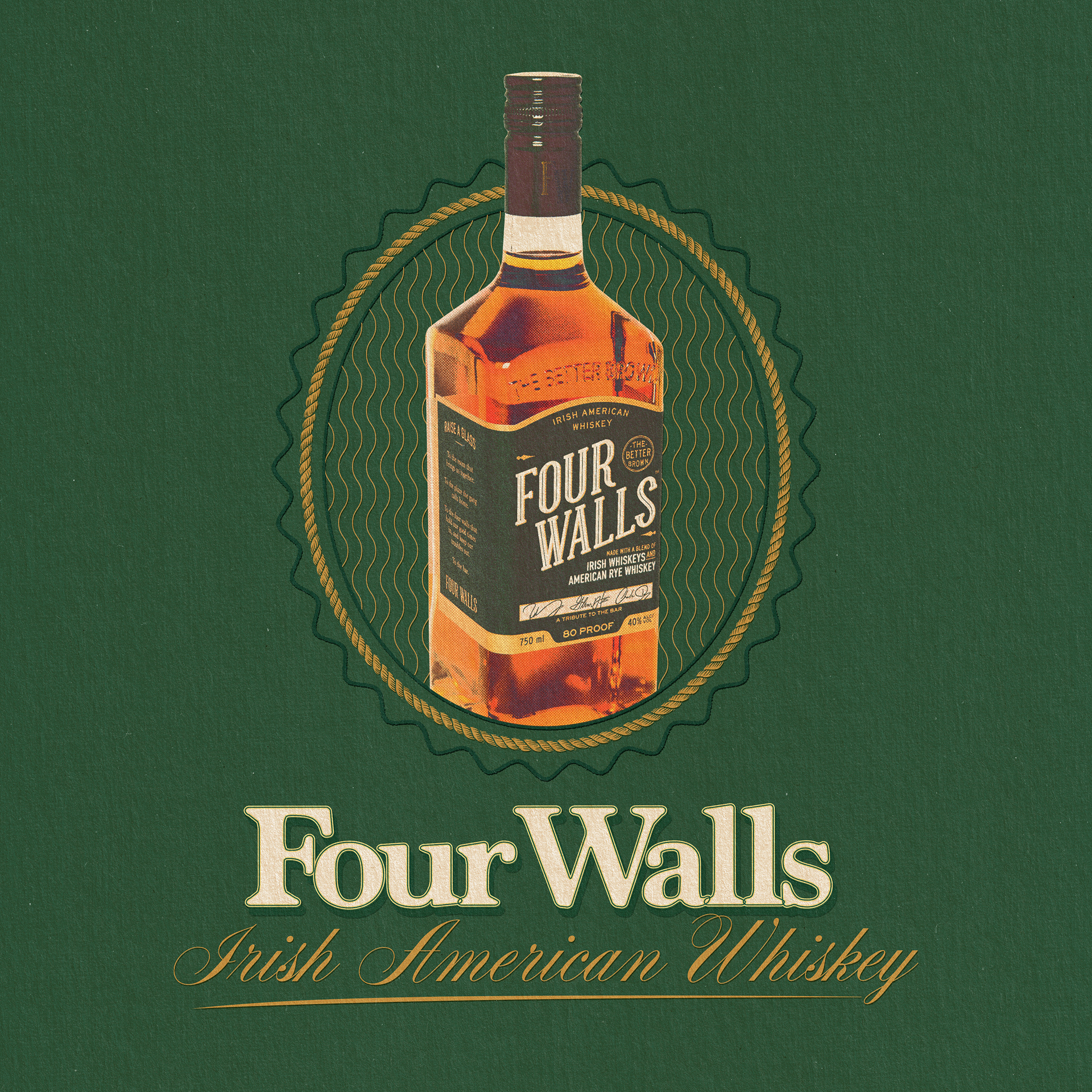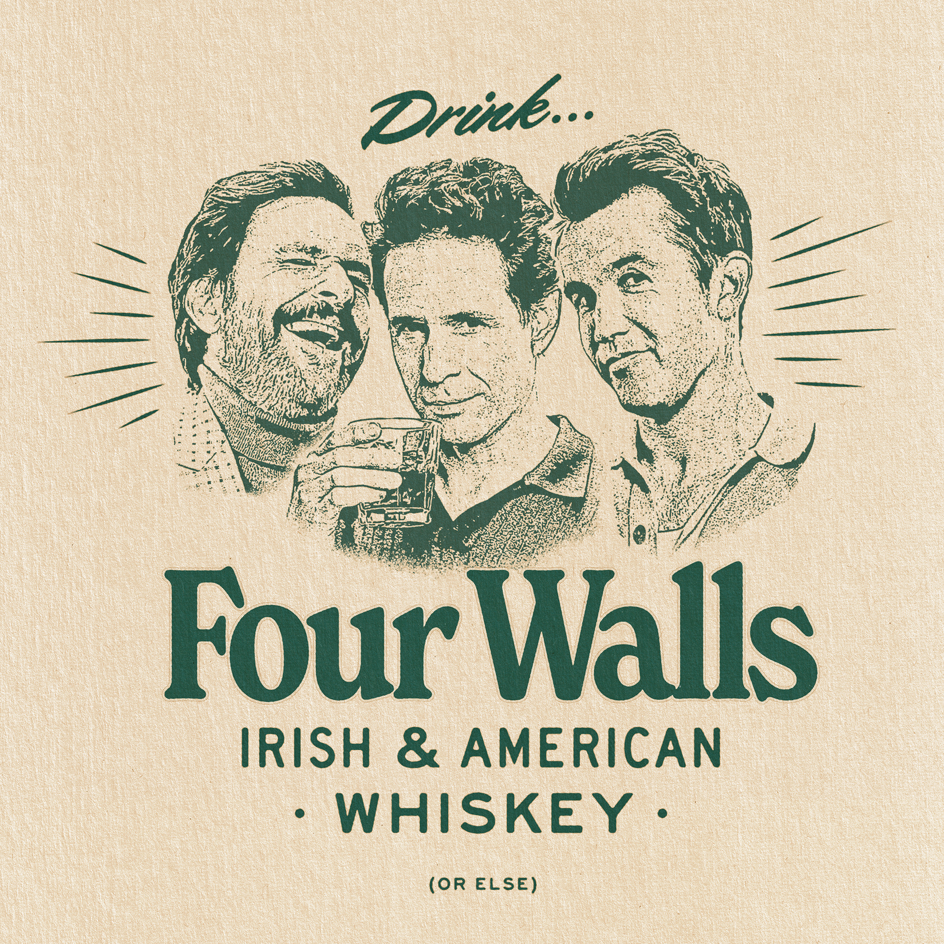 A collection of proposed merch designs created for Four Walls Whiskey – from the 3 amigos of It's Always Sunny