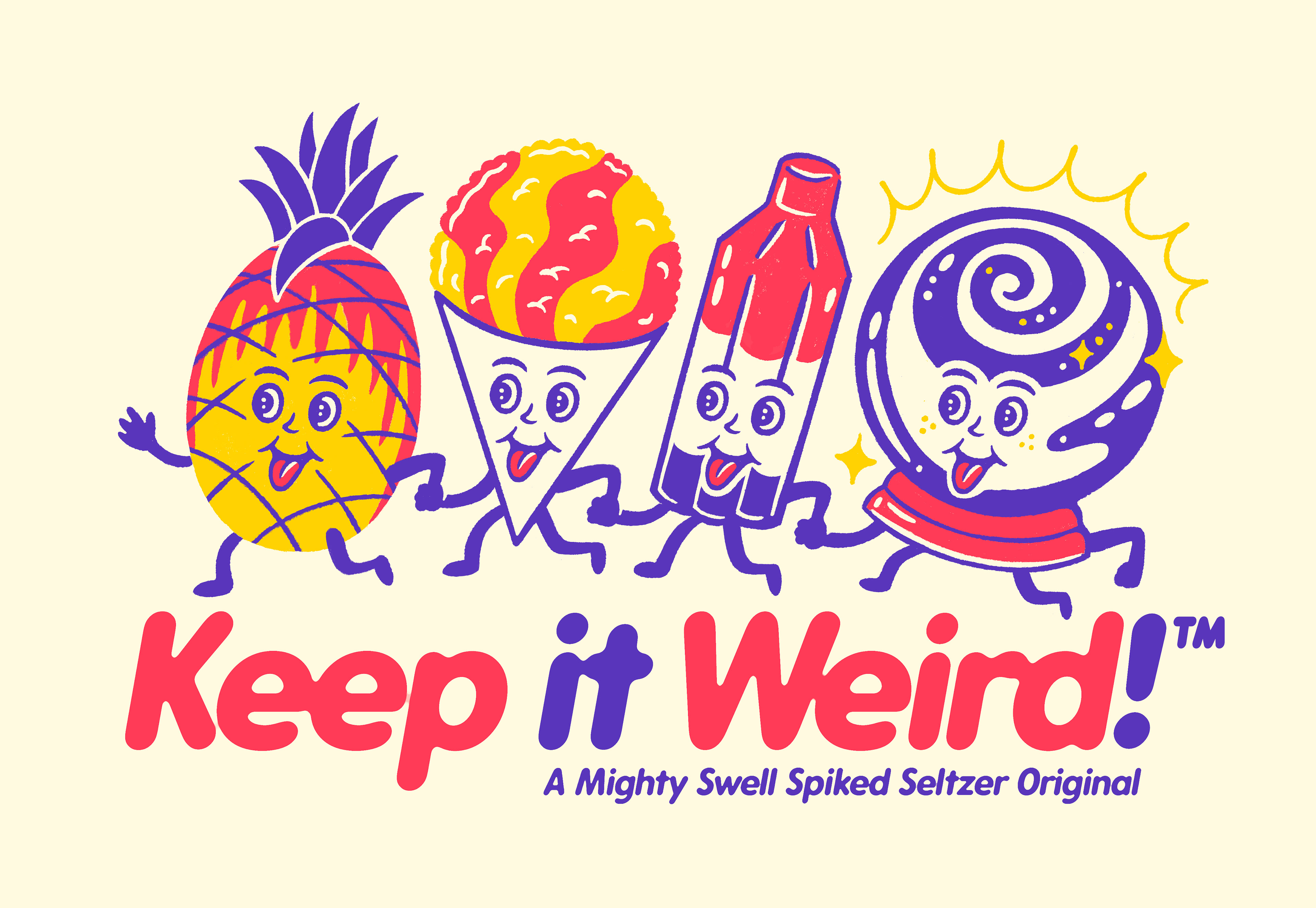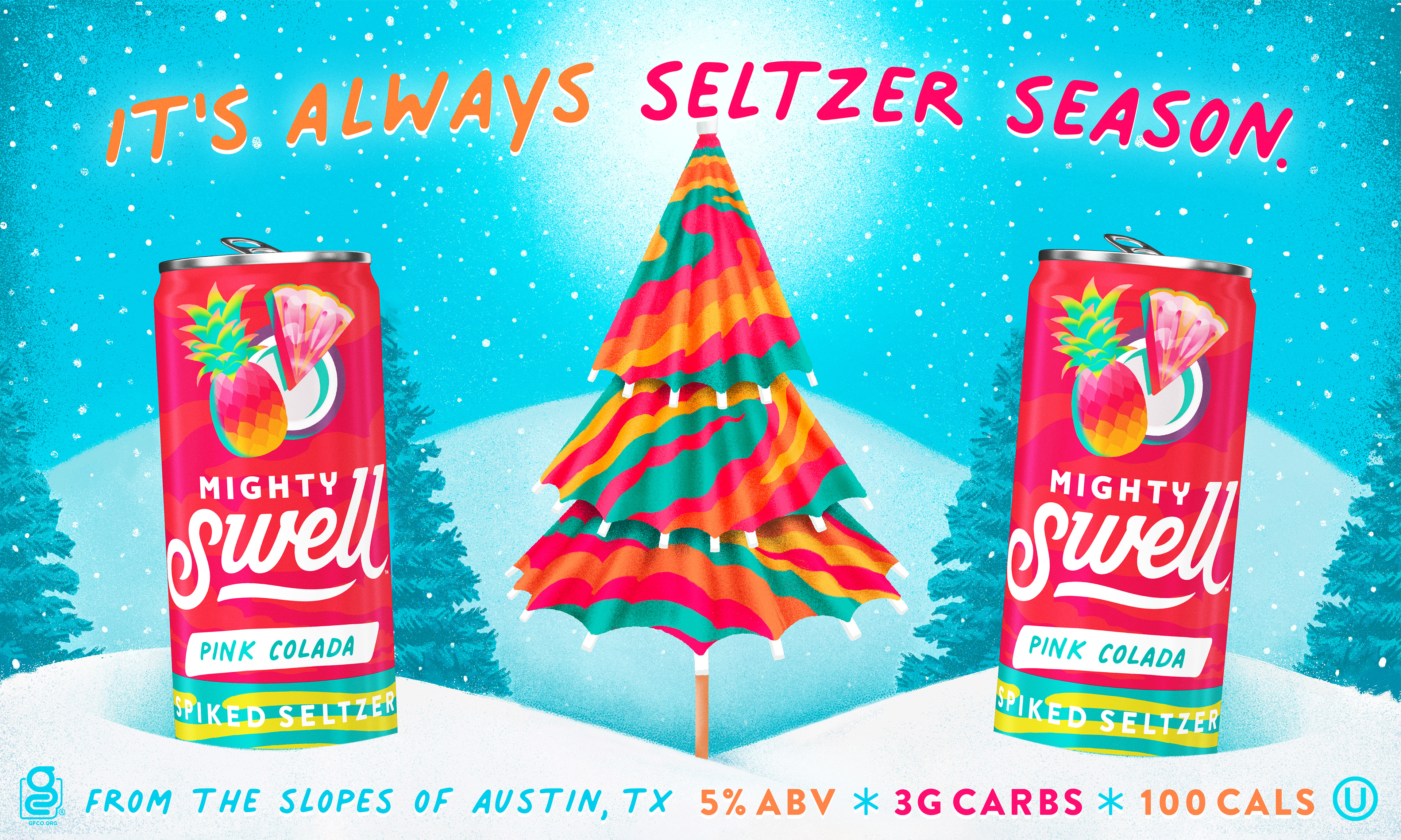 A small collection of illustrations and graphics for Mighty Swell Spiked Seltzers.